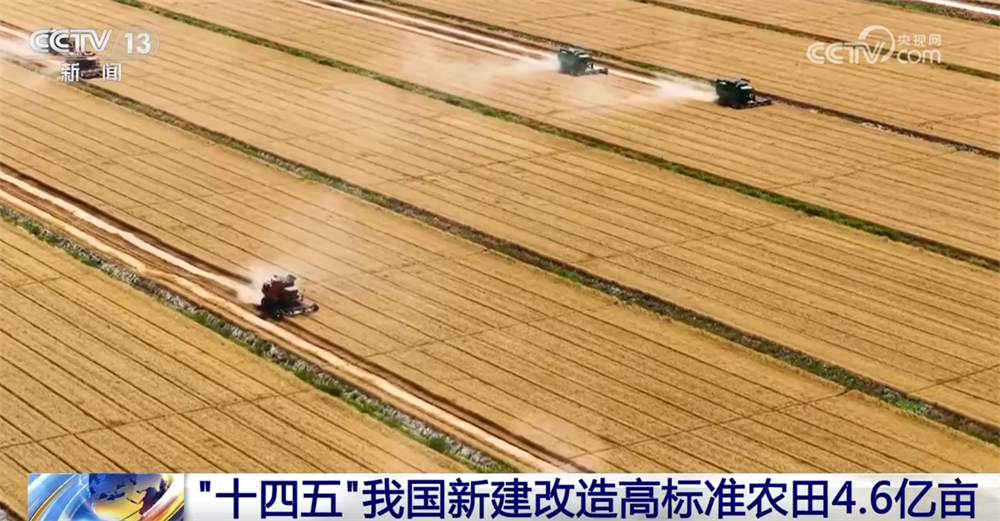 央视网消息:记者从农业农村部了解到,“十四五”期间,我国高质量推进高标准农田建设,累计安排中央资金超7000亿元,支持各地新建和改造提升高标准农田4.6亿亩,为保障国家粮食安全提供了有力支撑。
