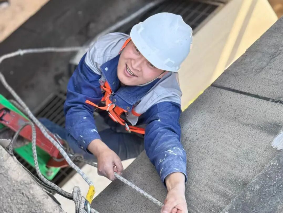 腰系安全绳,手持专业工具,他在百米高空与建筑外墙“对话”,以毫米级的精度修复建筑的“伤痕”,将高危作业转化为千家万户的安心保障。