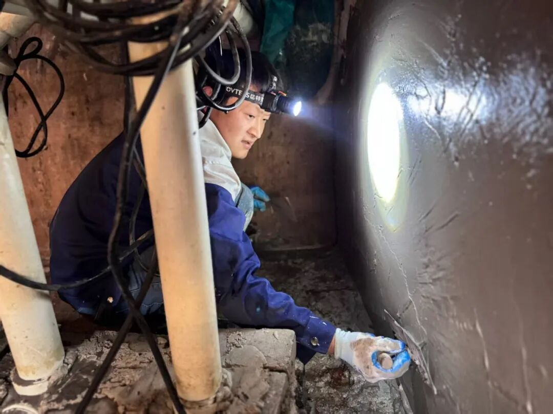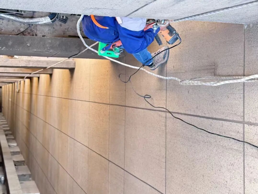 他带领团队,先用轻型电动铲刀精准清除空鼓层,再配合高压水枪逐层剥离鼓包部位。整个过程严格控制力度,避免震动导致未脱落区域二次开裂。