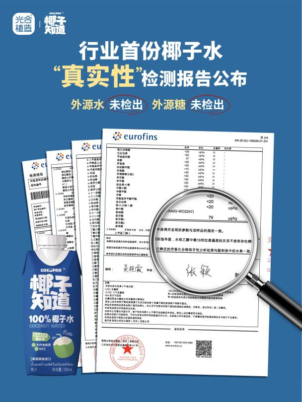 作为发起方,椰子知道承诺践行标准:一是供应链全透明,实现从采摘到灌装的全流程溯源;二是对符合标准的产品主动提供第三方检测报告。“我们声称100% NFC或100%椰子水的产品,都会附上权威检测报告供验证。”